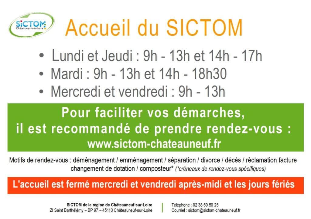 Vous pouvez retrouver cette information sur www.sictom-chateauneuf.fr et sur la page Facebook du SICTOM